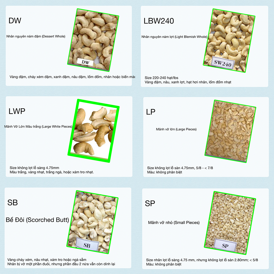 Strange cashew nuts is a kind is soaked in chemicals, then the seeds is big, white, nice color and also heavy. However, when we eat, it is very bad, soft, not delicious and completely white whole grains. With the old one – stored in a long time, usually people use additive to last the death time of products, therefore eating slowly and we can feel the rancidity, sore throat and harmful to your health. You can check and see that the price of this kind of products is cheaper